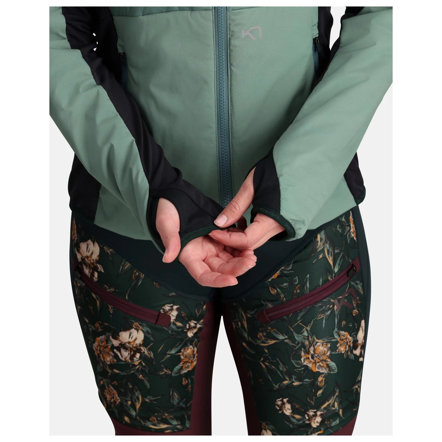- thumb loops, embroidered logo, reflective details, articulated sleeves