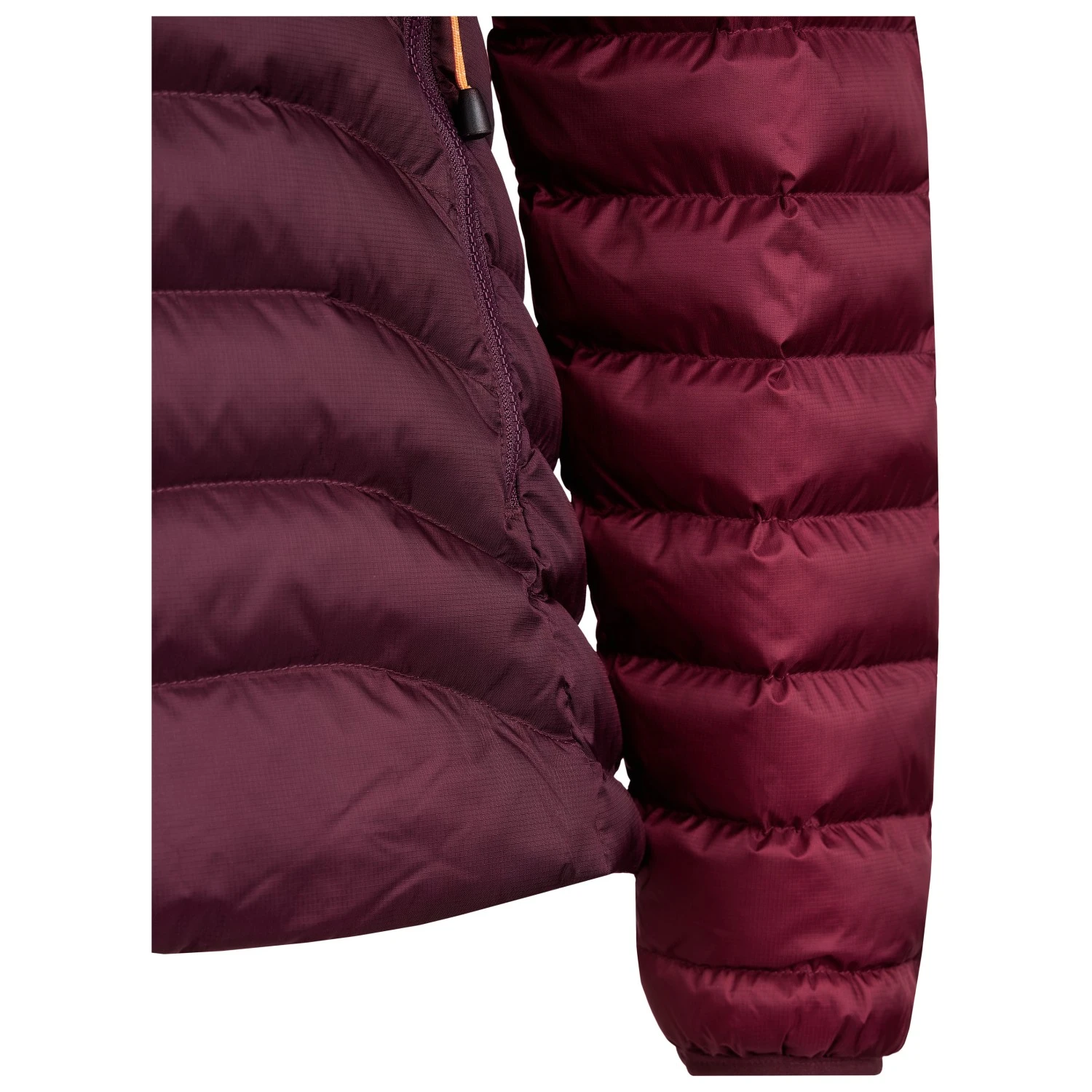 - elastic sleeve cuffs, stowable in its own pocket, drawstring in the seam, logo patch