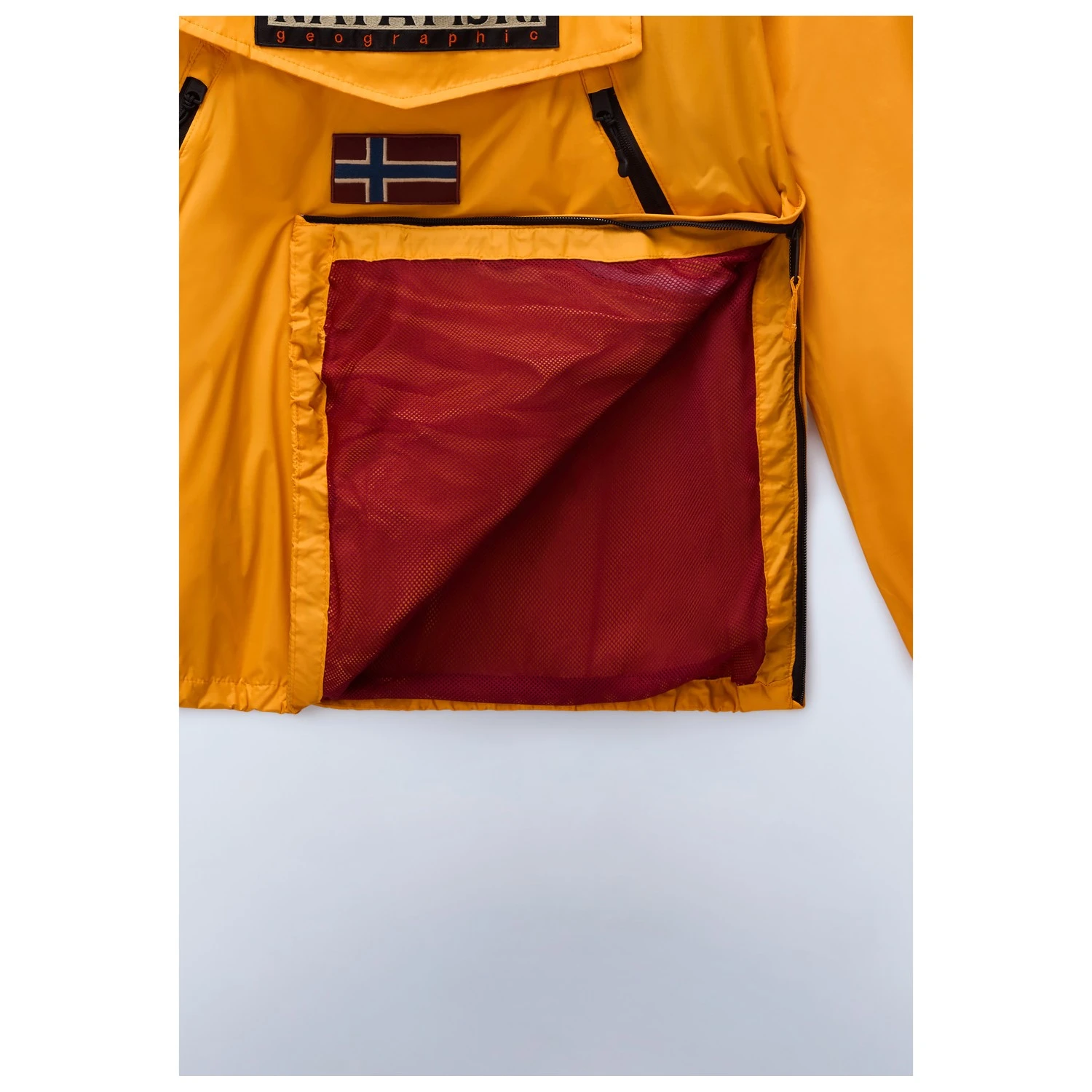 - elastic sleeve cuffs, logo patch, adjustable hem